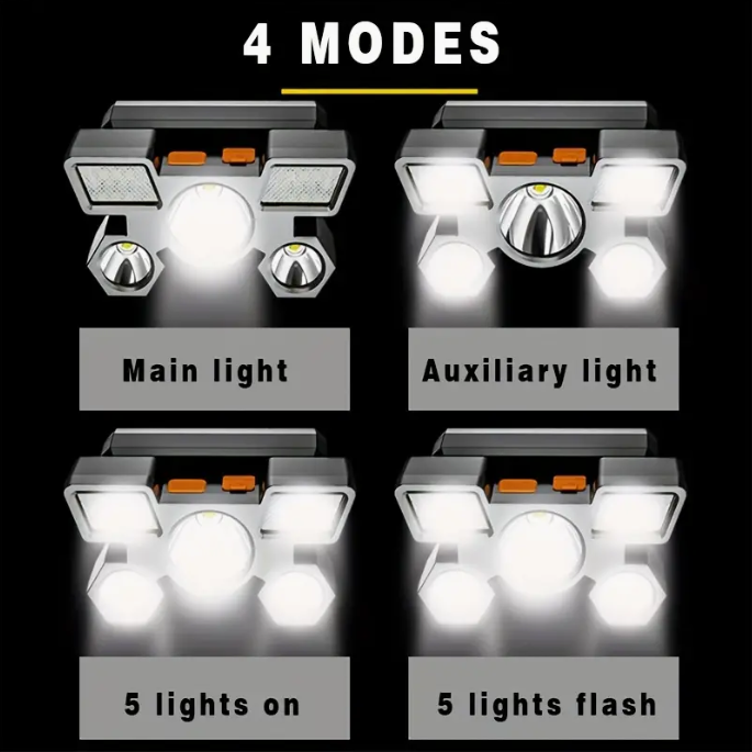 USB Rechargeable Headlamp Portable 5LED Headlight Built In Battery Torch Portable Working Light Fishing Camping Head Light For Travel, Camping, Fishing, Hunting